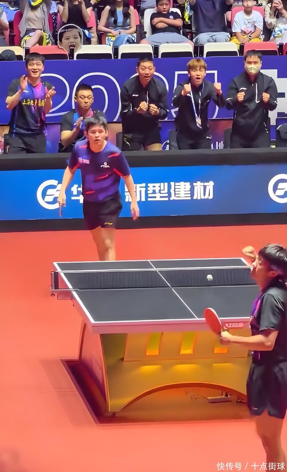 赵子豪锁定胜局的一刻,上海队替补席眨眼间欢娱!中枢樊振东第一时辰欢腾起身,为队友这不行想议的顺利奉上真诚而强烈的掌声