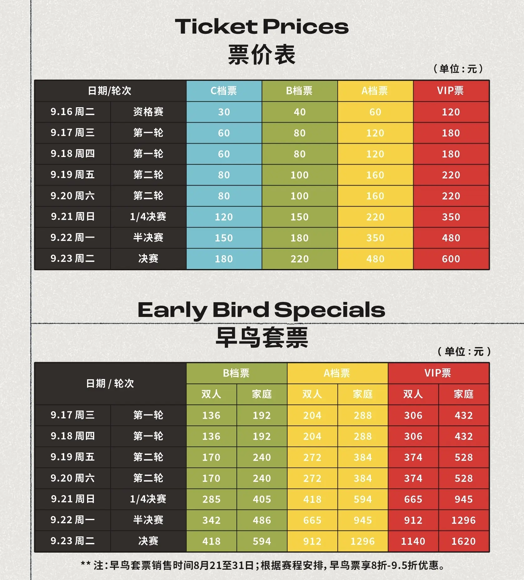 从8月21日至8月31日,赛事早鸟票将优先发售,套票享8折至95折的优惠。不雅赛体验愈加超值。