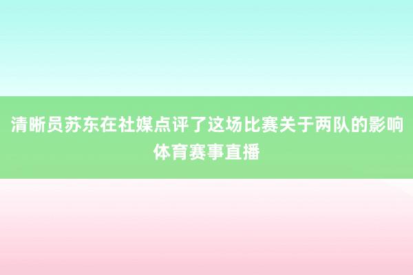 体育赛事直播 1月16日讯 北京技术今天凌晨进行的英超第21轮北伦敦德比,阿森纳主场2-1逆转打败热刺。赛后,清晰员苏东在社媒点评了这场比赛关于两队的影响。 苏东在社媒点评写说念: 此番北伦敦对话,阿森纳不成掉队,热刺更思找到节律。阿森纳在......